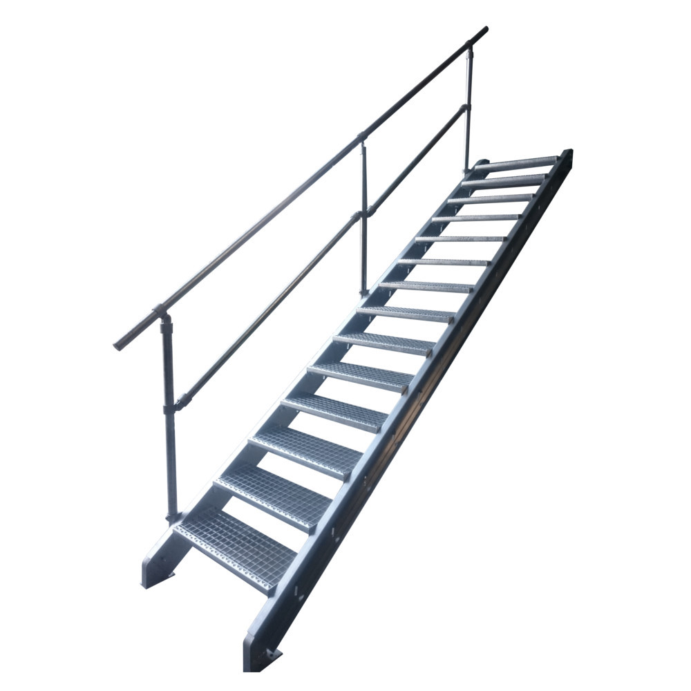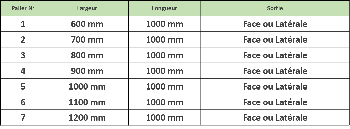 Afin de répondre au mieux à la demande de nos clients, nous proposons une nouvelle gamme d’escalier en acier galvanisé complète à géométries variables offrant d’avantages de possibilités et d’options supplémentaires telles que des escaliers en kit de 2 et 3 marches pour le franchissement de faibles hauteurs de 40 et 60 cm, des escaliers sans garde corps, ainsi que des solutions d’escalier avec palier intégré pour une sortie de face ou latérale.