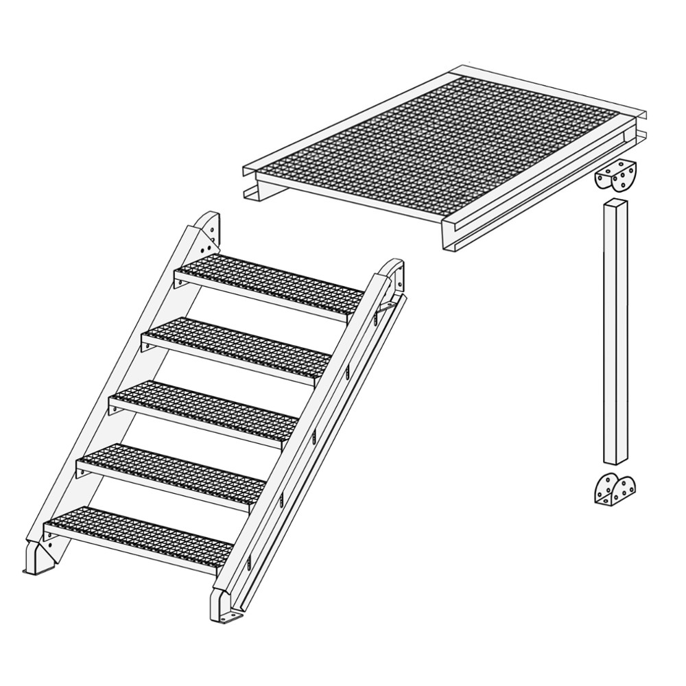 Escaliers vendus avec 2 platines latérales percées , vis et écrous et marches de la largeur de votre choix parmi nos différentes dimensions disponibles.